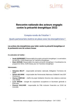 > Avec Sébastien BELOT, responsable animation nationale, Délégation Territoires de GRDF, Sylvain DECARNE, responsable des Partenariats Nationaux Solidarité chez EDF Commerce, Clarisse MORVAN, cheffe de projet Solidarité chez ENGIE, Lucie ANIZON, chargée de coopération européenne et Secrétaire générale à Enercoop, et Florence GUILCHER, responsable du Pôle inclusion financière au CCAS de Grenoble