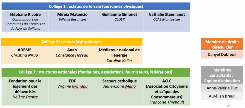 Notre modèle de gouvernance est issu d’un travail collaboratif qui a impliqué des parties prenantes du réseau RAPPEL dans le cadre d’un travail de repositionnement stratégique mené en 2025. L’instance intègre des acteurs institutionnels, des acteurs nationaux et des professionnel·les de terrain en contact avec les ménages en précarité énergétique.